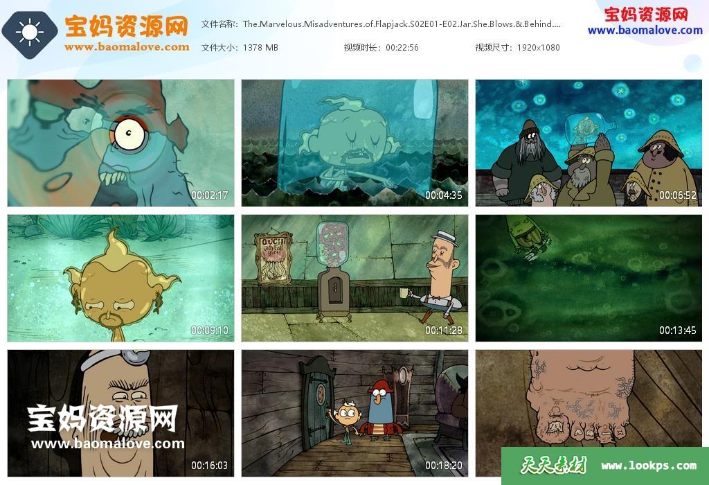 天天资源网收录的动画片《The Marvelous Misadventures of Flapjack》杰克和鲸鱼的大冒险英文版 第二季,全部38集,英语发音,内置英文字幕(可以下载后使用播放器选择字幕或者关闭字幕);每集大小700M,资源总大小26.7G,单集播放时长约11分钟,1080P高清MKV格式,可以在电视机或电脑、平板、IPAD、早教机、手机等各种设备播放,提供百度云网盘下载。