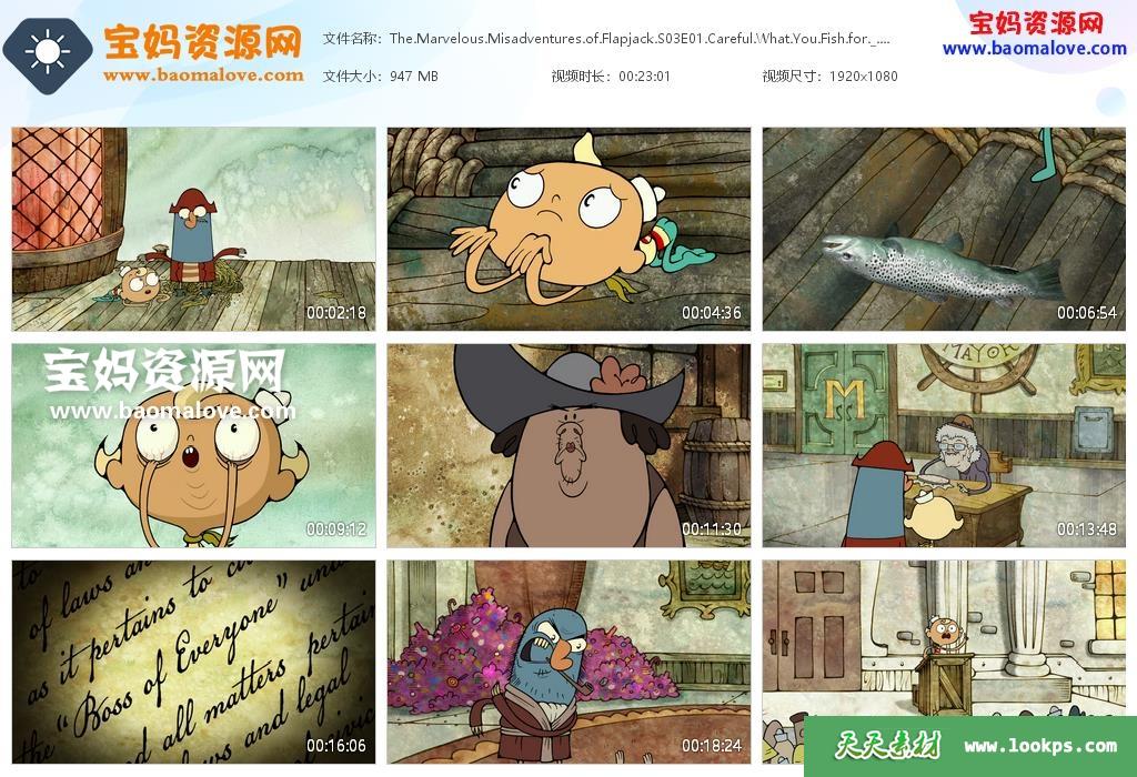 天天资源网收录的动画片《The Marvelous Misadventures of Flapjack》杰克和鲸鱼的大冒险英文版 第三季,全部12集,英语发音,内置英文字幕(可以下载后使用播放器选择字幕或者关闭字幕);每集大小450M,资源总大小5.43G,单集播放时长约11分钟,1080P高清MKV格式,可以在电视机或电脑、平板、IPAD、早教机、手机等各种设备播放,提供百度云网盘下载。