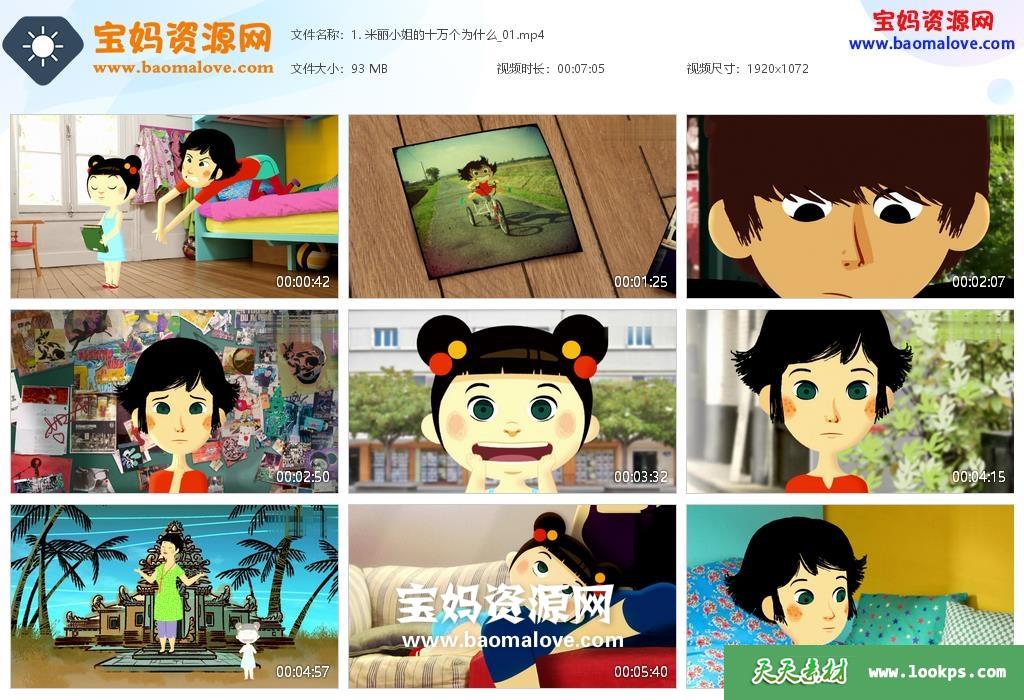 天天资源网收录的动画片《米丽小姐的十万个为什么》Mily Miss Questions中文版,全部78集,国语发音,无字幕;每集大小约122M,资源总大小9.77G,单集播放时长约7分钟,1080P高清MP4格式,可以在电视机或电脑、平板、IPAD、早教机、手机等各种设备播放,提供百度云网盘下载。