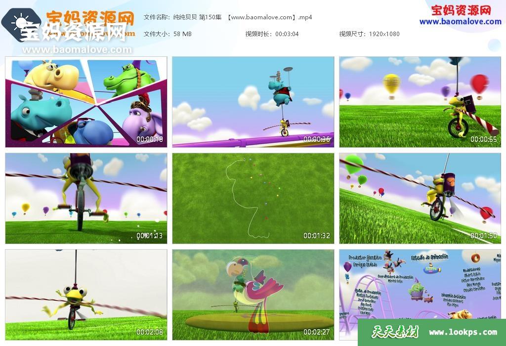 天天资源网收录的动画片《Zumbers》纯纯贝贝英文版,全部150集,英语发音,无字幕;每集大小61MG,资源总大小9.27G,单集播放时长约3分钟,1080P高清MP4视频格式,可以在电视机或电脑、平板、IPAD、早教机、手机等各种设备播放,提供百度云网盘下载。