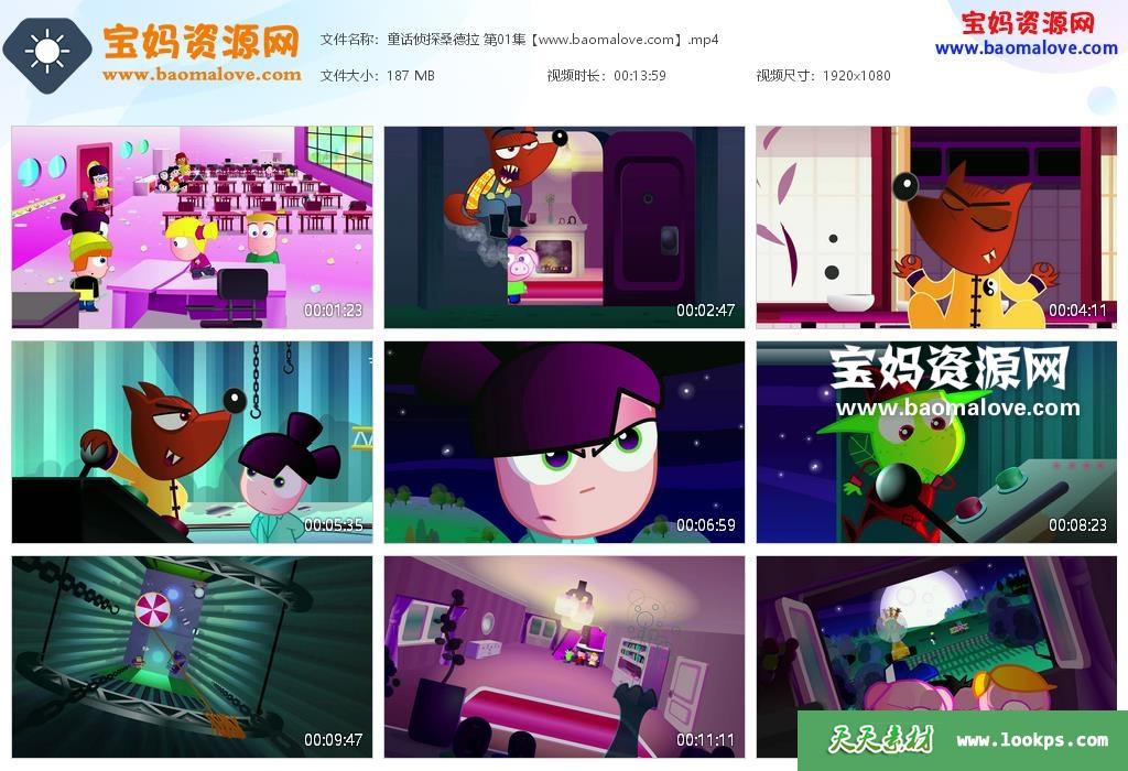 天天资源网收录的动画片《童话侦探桑德拉》The Fairytale Detective Sandra中文版,全部52集,国语发音,无字幕;每集大小约160M,资源总大小8.72G,单集播放时长约14分钟,1080P高清MP4视频格式,可以在电视机或电脑、平板、IPAD、早教机、手机等各种设备播放,提供百度云网盘下载。