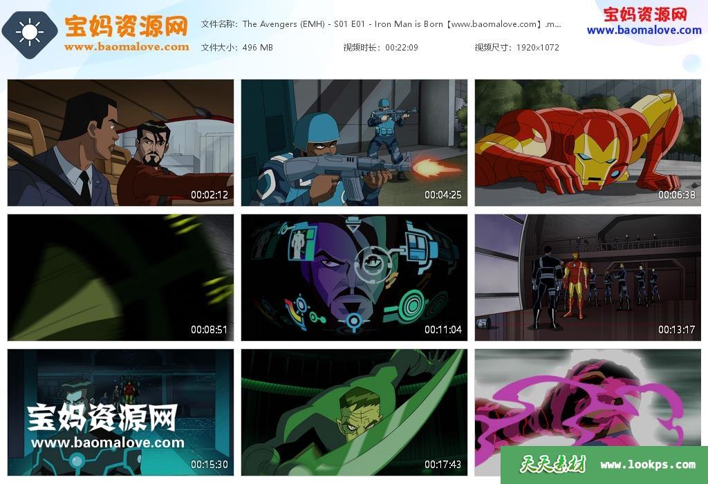 天天资源网收录的动画片《The Avengers: Earth’s Mightiest Heroes》复仇者:世上最强英雄组合英文版 第一季,全部26集,英语发音,无字幕;每集大小460M,资源总大小12.1G,单集播放时长约22分钟,1080P高清MKV格式,可以在电视机或电脑、平板、IPAD、早教机、手机等各种设备播放,提供百度云网盘下载。