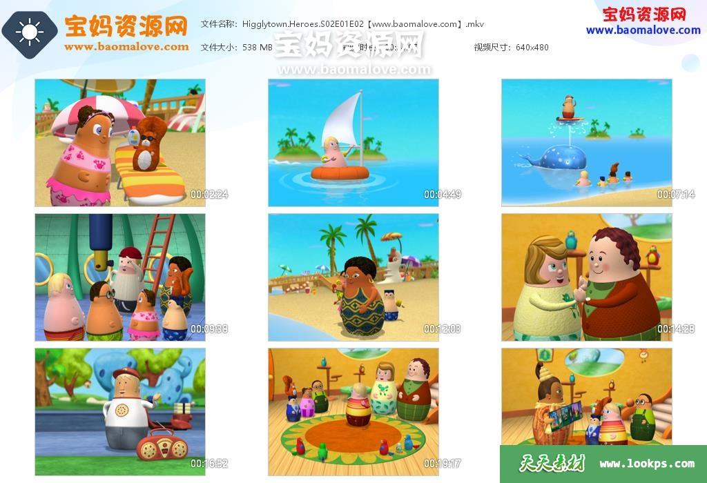 天天资源网收录的动画片《Higglytown Heroes》喜乐镇英雄英文版 第二季,全部37集,英语发音,内置英文字幕(可下载后使用播放器选择设置字幕或者关闭字幕);每集大小265M,资源总大小11G,单集播放时长约12分钟,480P标清MKV格式,可以在电视机或电脑、平板、IPAD、早教机、手机等各种设备播放,提供百度云网盘下载。