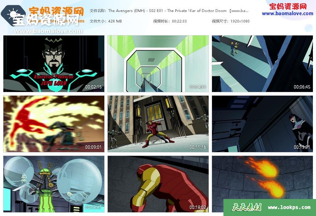 天天资源网收录的动画片《The Avengers: Earth’s Mightiest Heroes》复仇者:世上最强英雄组合英文版 第二季,全部26集,英语发音,无字幕;每集大小430M,资源总大小11.4G,单集播放时长约22分钟,1080P高清MKV格式,可以在电视机或电脑、平板、IPAD、早教机、手机等各种设备播放,提供百度云网盘下载。