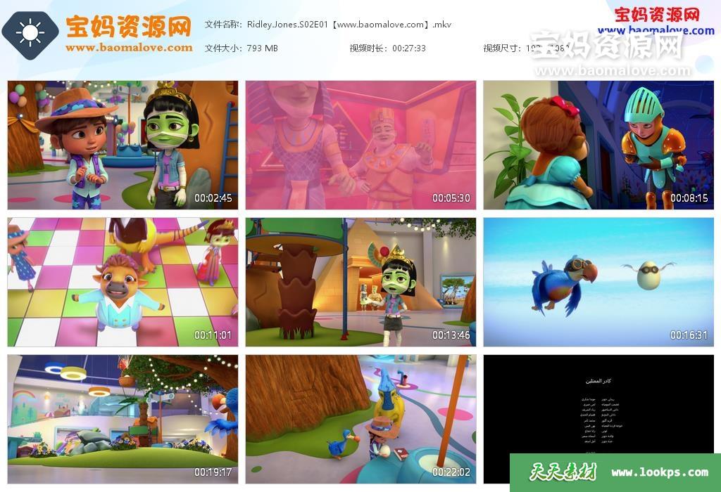 天天资源网收录的动画片《Ridley Jones》瑞德莉·琼斯:博物馆守护者英文版 第二季,全部5集,英语发音,内置英文字幕(内置多国语言字幕,简体中文,繁体中文,阿拉伯文,丹麦文,捷克文,德文,希腊文,西班牙文,法文,波兰文,希伯来文,意大利文,日文,马来西亚文,泰文,越南文,俄文,瑞典文等,可以下载后使用播放器选择设置字幕或者关闭字幕);每集大小约800M,资源总大小4.02G,单集播放时长约27分钟,1080P高清MKV视频格式,可以在电视机或电脑、平板、IPAD、早教机、手机等各种设备播放,提供百度网盘下载。