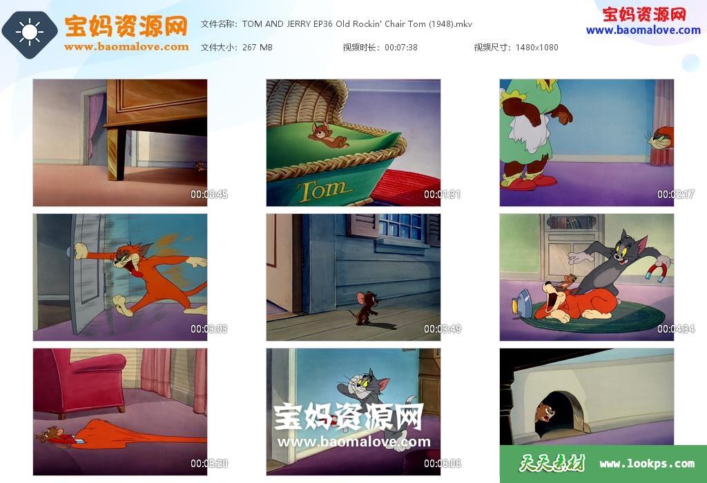 天天资源网收录的动画片《Tom and Jerry The Golden Collection Volume One》猫和老鼠黄金精选版第一卷英文版,全部37集,英语发音,内置英文字幕(可以下载后使用播放器设置字幕字体大小颜色或者切换关闭字幕);每集大小约300M,资源总大小11.2G,单集播放时长约7分钟,1080P高清MKV视频格式,可以在电视机或电脑、平板、IPAD、早教机、手机等各种设备播放,提供百度网盘下载。