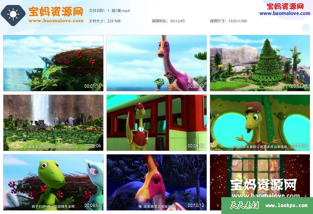 天天资源网收录的动画片《恐龙火车之地心旅行》Dinosaur Train中文版,全部20集,国语发音,中文字幕;每集大小约205M,资源总大小4.12G,单集播放时长约12分钟,1080P高清MP4视频格式,可以在电视机或电脑、平板、IPAD、早教机、手机等各种设备播放,提供百度云网盘下载。