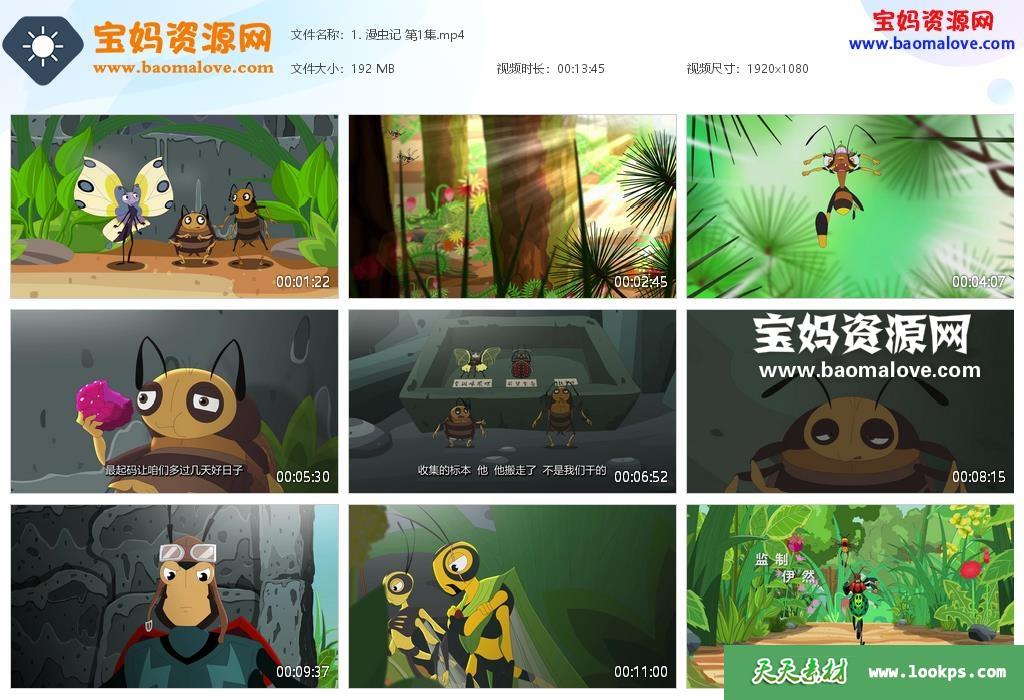 天天资源网收录的动画片《漫虫记》,全部26集,国语发音,中文字幕;每集大小约208M,资源总大小约5.47G,单集播放时长约14分钟,1080P高清MP4格式,可以在电视机或电脑、平板、IPAD、早教机、手机等各种设备播放,提供百度云网盘下载。