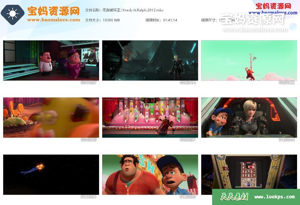 天天资源网收录的动画电影《无敌破坏王 Wreck-It Ralph》,国粤台英四语发音,中英文字幕;资源大小约10.1G,804P高清MKV视频格式,可以在电视机或电脑、平板、IPAD、早教机、手机等各种设备播放,提供百度云网盘下载。