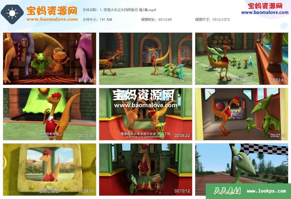 天天资源网收录的动画片《恐龙火车之大自然旅行》英文版,全部26集,英语发音,中英文字幕;每集大小200M,资源总大小5.39G,单集播放时长约12分钟,1080P高清MP4视频格式,可以在电视机或电脑、平板、IPAD、早教机、手机等各种设备播放,提供百度云网盘下载。