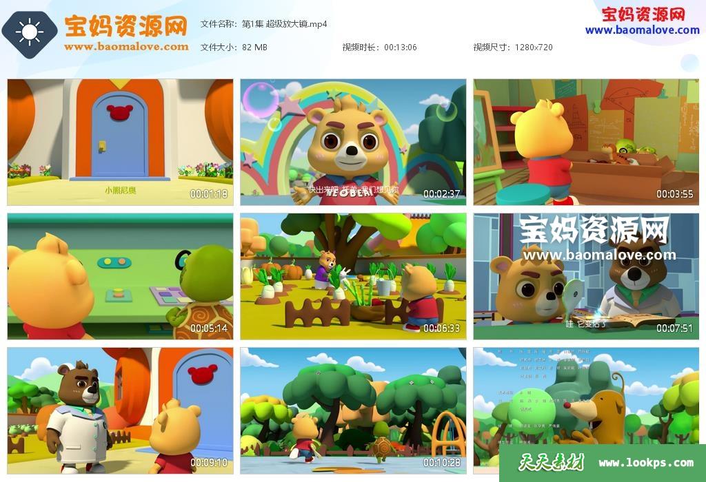 天天资源网收录的动画片《小熊尼奥之梦境小镇》,全部52集,国语发音,中文字幕;每集大小约85M,资源总大小约4.44G,单集播放时长约13分钟,720P高清MP4视频格式,可以在电视机或电脑、平板、IPAD、早教机、手机等各种设备播放,提供百度云网盘下载。