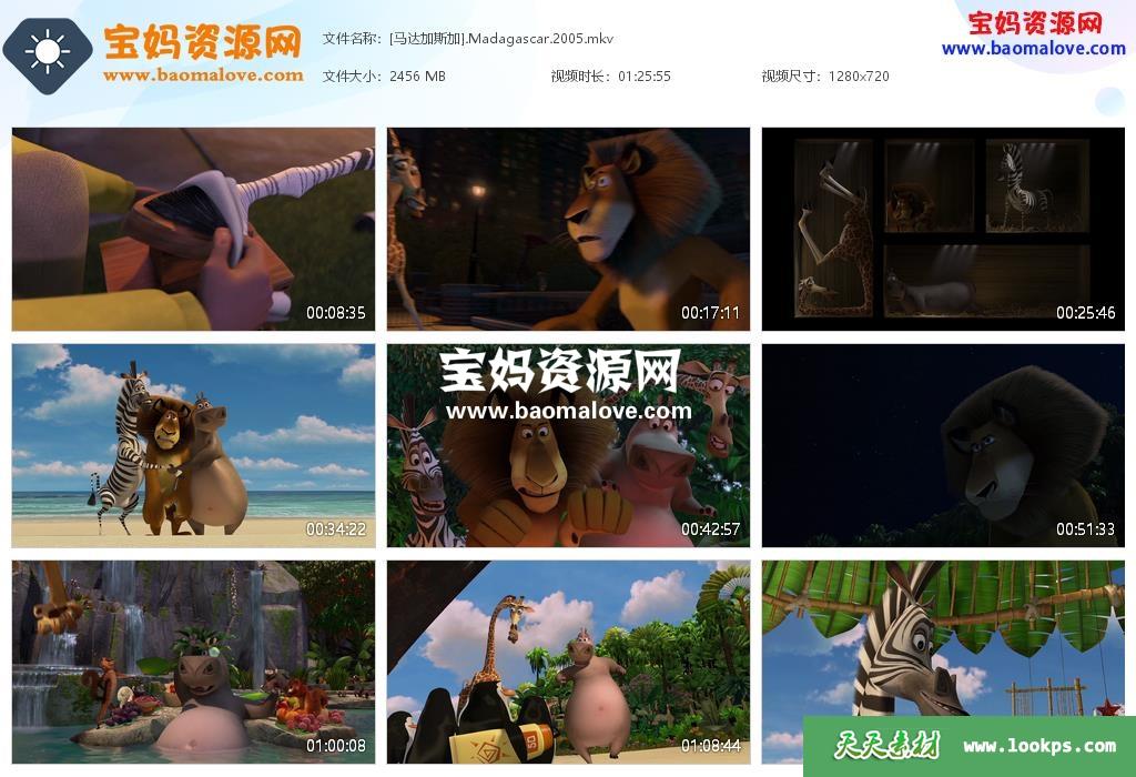 天天资源网收录的动画电影《马达加斯加 Madagascar》,国语/粤语/英语三语发音,内置中文字幕(可以下载后使用播放器选择设置字幕或者关闭字幕);资源大小约2.39G,720P高清MKV视频格式,可以在电视机或电脑、平板、IPAD、早教机、手机等各种设备播放,提供百度云网盘下载。
