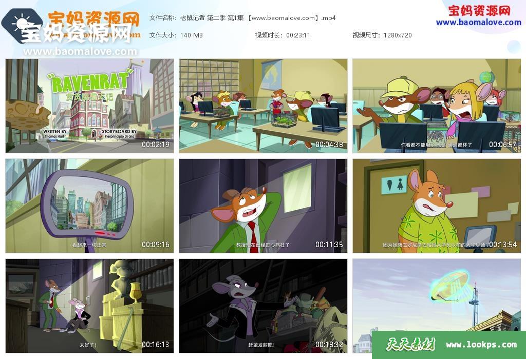 天天资源网收录的动画片《老鼠记者》Geronimo Stilton中文版 第二季,全部26集,国语发音,中文字幕;每集大小约150M,资源总大小4.26G,单集播放时长约23分钟,720P高清MP4视频格式,可以在电视机或电脑、平板、IPAD、早教机、手机等各种设备播放,提供百度云网盘下载。