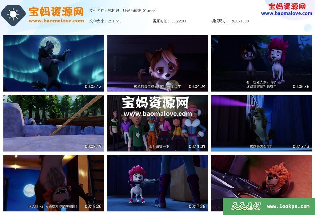 天天资源网收录的动画片《纯种狼:月光石传说》100% Wolf: Legend of the Moonstone中文版,全部26集,国语发音,中文字幕;每集大小约230M,资源总大小5.99G,单集播放时长约22分钟,1080P高清MP4视频格式,可以在电视机或电脑、平板、IPAD、早教机、手机等各种设备播放,提供百度云网盘下载。