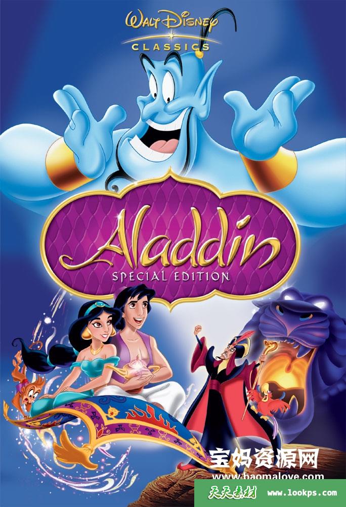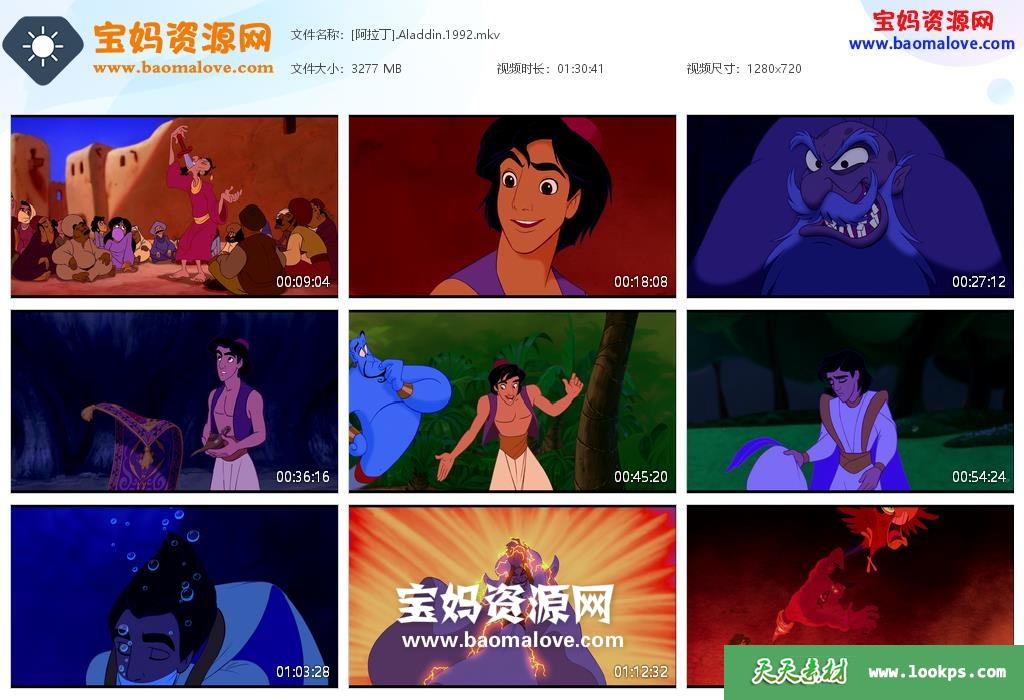 天天资源网收录的动画电影《阿拉丁 Aladdin》,台配国语/粤语/英语三语发音,内置中英文字幕(可以下载后使用播放器选择设置字幕或者关闭字幕);资源大小约3.2G,720P高清MKV视频格式,可以在电视机或电脑、平板、IPAD、早教机、手机等各种设备播放,提供百度云网盘下载。