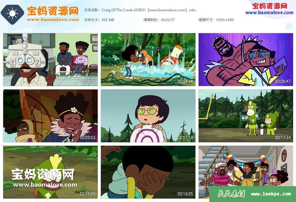 天天资源网收录的动画片《Craig of the Creek》小溪仔克雷格英文版 第三季,全部36集,英语发音,内置英文字幕(可以下载后使用播放器设置字幕字体大小颜色或者切换关闭字幕);每集大小约170M,资源总大小7.23G,单集播放时长约11~22分钟,1080P高清MKV视频格式,可以在电视机或电脑、平板、IPAD、早教机、手机等各种设备播放,提供百度网盘下载。