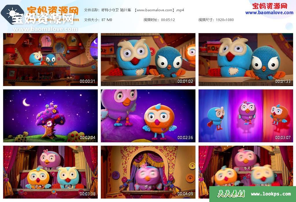 天天资源网收录的动画片《呼特小守卫》Hoot Hoot Go中文版,全部26集,国语发音,无字幕;每集大小约87M,资源总大小2.31G,单集播放时长约5分钟,1080P高清MP4视频格式,可以在电视机或电脑、平板、IPAD、早教机、手机等各种设备播放,提供百度云网盘下载。