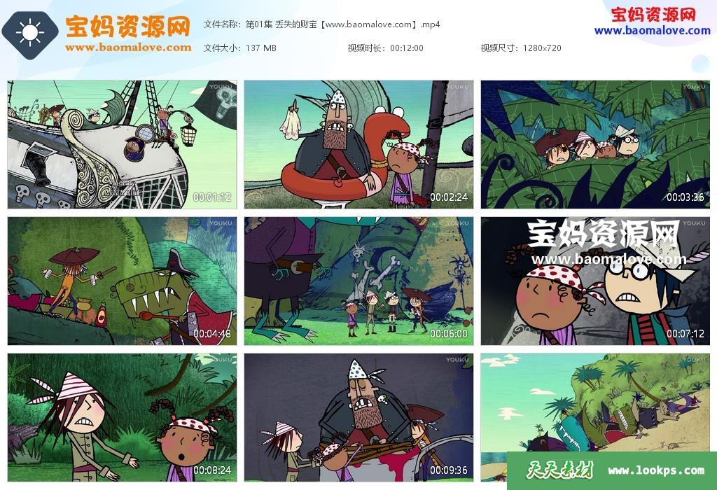天天资源网收录的动画片《弗林船长和恐龙海盗》Captain Flinn and the Pirate Dinosaurs中文版,全部52集,国语发音,无字幕;每集大小约130M,资源总大小6.38G,单集播放时长约12分钟,720P高清MP4视频格式,可以在电视机或电脑、平板、IPAD、早教机、手机等各种设备播放,提供百度云网盘下载。