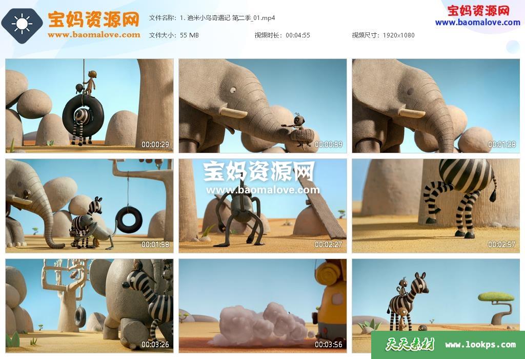 天天资源网收录的动画片《迪米小鸟奇遇记》Dimitri中文版 第二季,全部25集,国语发音,无字幕;每集大小约50M,资源总大小1.36G,单集播放时长约5分钟,1080P高清MP4视频格式,可以在电视机或电脑、平板、IPAD、早教机、手机等各种设备播放,提供百度云网盘下载。