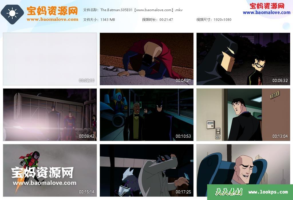 天天资源网收录的动画片《The Batman》新蝙蝠侠英文版 第五季,全部13集,英语发音,内置英文字幕(可以下载后使用播放器设置字幕字体大小颜色或者切换关闭字幕);每集大小约1.23G,资源总大小16.2G,单集播放时长约20分钟,1080P高清MKV视频格式,可以在电视机或电脑、平板、IPAD、早教机、手机等各种设备播放,提供百度网盘下载。