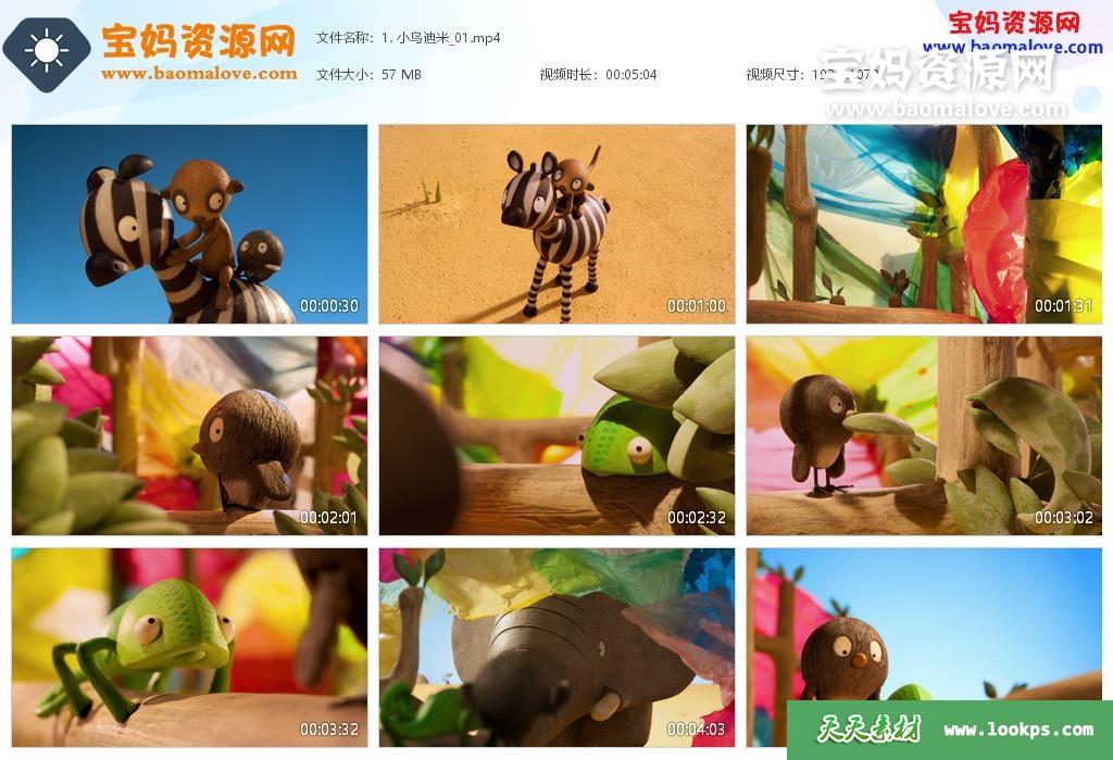 天天资源网收录的动画片《迪米小鸟奇遇记》Dimitri中文版,全部26集,国语发音,无字幕;每集大小约41M,资源总大小1.04G,单集播放时长约5分钟,1080P高清MP4视频格式,可以在电视机或电脑、平板、IPAD、早教机、手机等各种设备播放,提供百度云网盘下载。