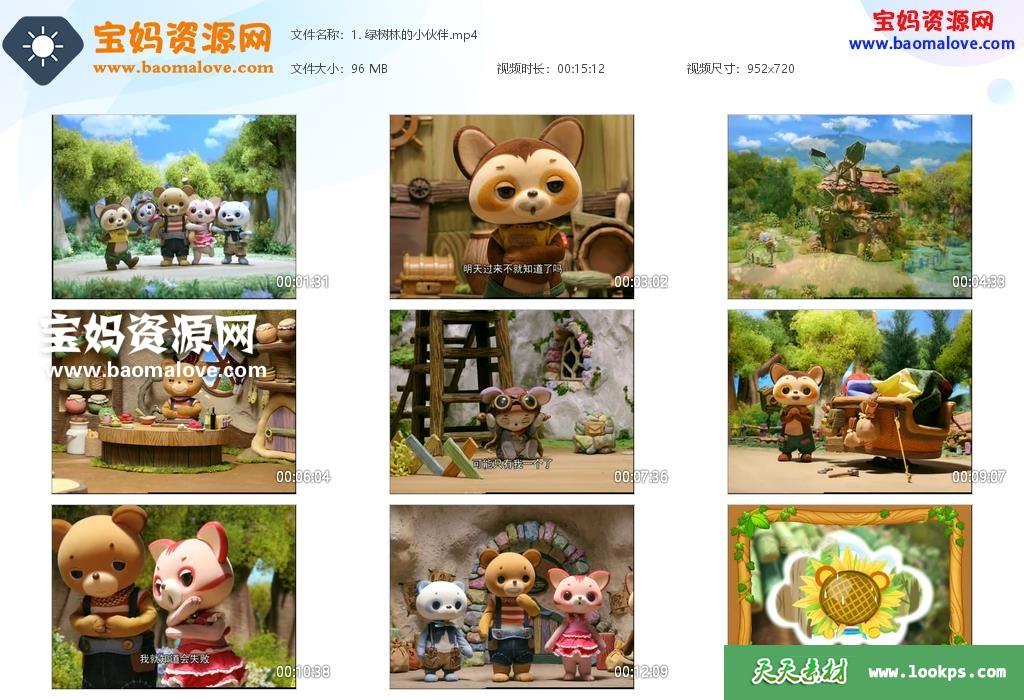 天天资源网收录的动画片《绿树林的故事》,全部26集,国语发音,中文字幕;每集大小约98M,资源总大小约3.02G,单集播放时长约15分钟,720P高清MP4视频格式,可以在电视机或电脑、平板、IPAD、早教机、手机等各种设备播放,提供百度云网盘下载。