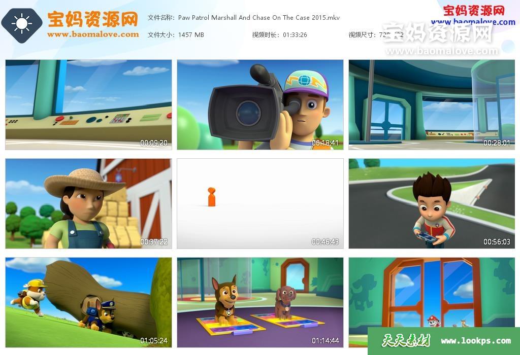 天天资源网收录的动画电影《汪汪队立大功之毛毛和阿奇在案件中 Paw Patrol: Marshall and Chase on the case!》,英语发音,无字幕;资源大小约1.42G,播放时长约93分钟,392P标清MKV视频格式,可以在电视机或电脑、平板、IPAD、早教机、手机等各种设备播放,提供百度云网盘下载。