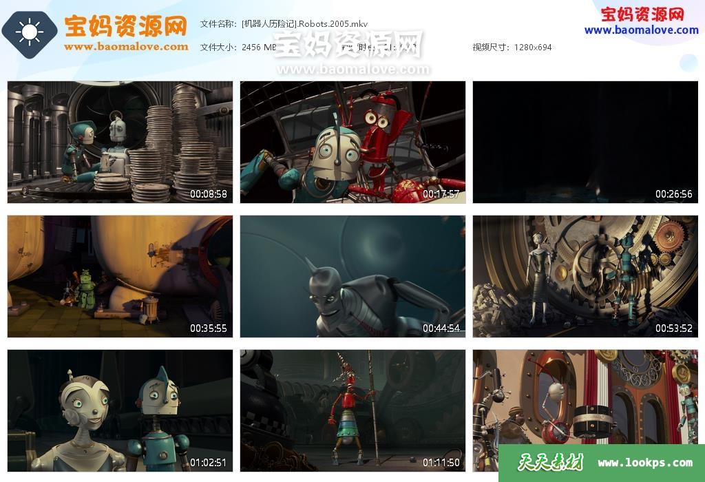 天天资源网收录的动画电影《机器人历险记 Robots》,国语/粤语/英语三语发音,内置中英文字幕(可以下载后使用播放器选择设置字幕或者关闭字幕);资源大小约2.39G,720P高清MKV视频格式,可以在电视机或电脑、平板、IPAD、早教机、手机等各种设备播放,提供百度云网盘下载。