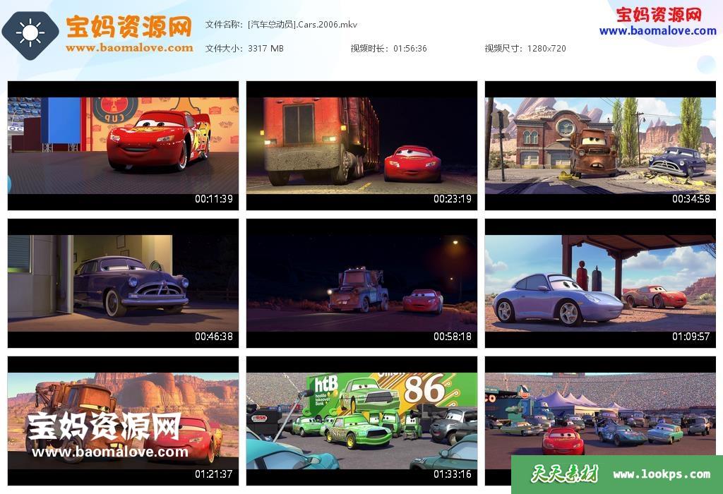 天天资源网收录的动画电影《赛车总动员 Cars》,国粤台英四语发音,内置中英文字幕(可以下载后使用播放器选择设置字幕或者关闭字幕);资源大小约3.23G,720P高清MKV视频格式,可以在电视机或电脑、平板、IPAD、早教机、手机等各种设备播放,提供百度云网盘下载。