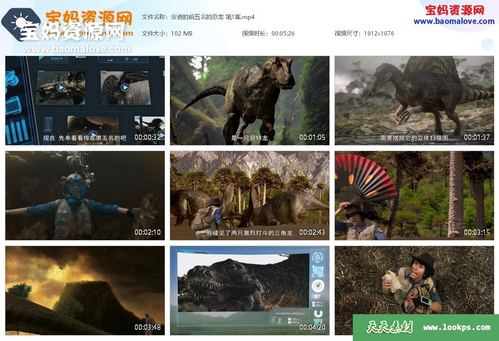 天天资源网收录的动画片《安迪的前五名的恐龙》Andy’s Top 5 Greatest Dinosaurs中文版,全部5集,国语发音,中文字幕;每集大小约90M,资源总大小约490M,单集播放时长约5分钟,1080P高清MP4视频格式,可以在电视机或电脑、平板、IPAD、早教机、手机等各种设备播放,提供百度云网盘下载。