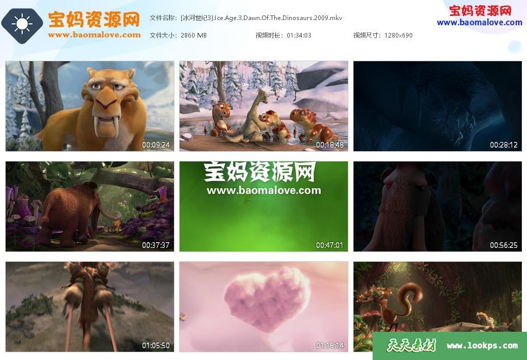 天天资源网收录的动画电影《冰川时代3 Ice Age: Dawn of the Dinosaurs》,国粤台英四语发音,内置中英文字幕(可以下载后使用播放器选择设置字幕或者关闭字幕);资源大小约2.79G,720P高清MKV视频格式,可以在电视机或电脑、平板、IPAD、早教机、手机等各种设备播放,提供百度云网盘下载。