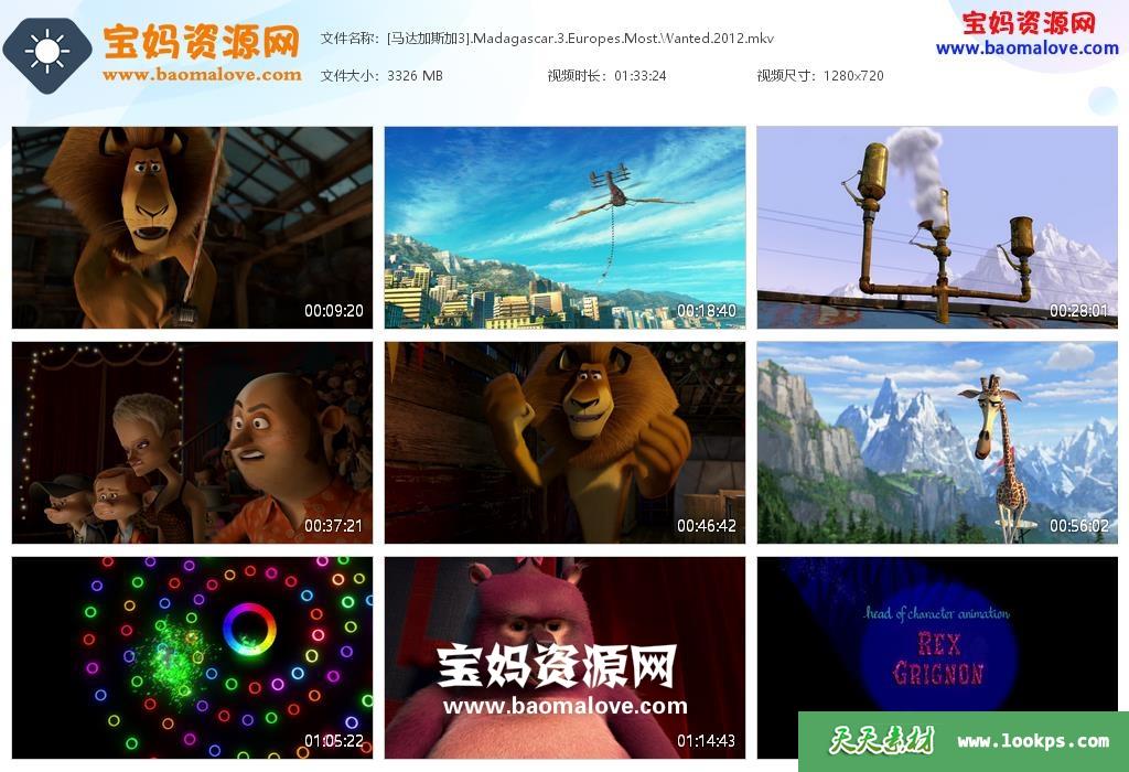 天天资源网收录的动画电影《马达加斯加3 Madagascar 3: Europe’s Most Wanted》,国语/粤语/英语三语发音,内置中英文字幕(可以下载后使用播放器选择设置字幕或者关闭字幕);资源大小约3.24G,720P高清MKV视频格式,可以在电视机或电脑、平板、IPAD、早教机、手机等各种设备播放,提供百度云网盘下载。