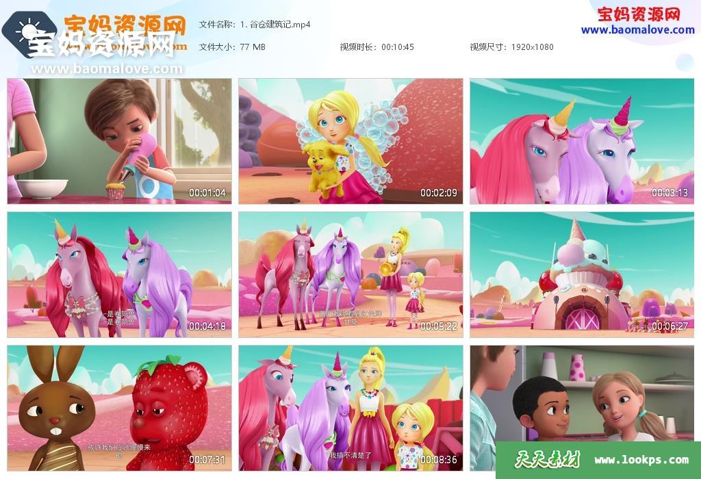 天天资源网收录的动画片《Barbie Dreamtopia》芭比之梦境奇遇记英文版,全部26集,英语发音,中文字幕;每集大小80M,资源总大小2.28G,单集播放时长约10分钟,1080P高清MP4视频格式,可以在电视机或电脑、平板、IPAD、早教机、手机等各种设备播放,提供百度云网盘下载。