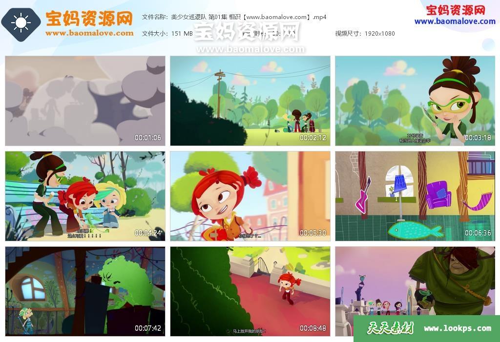 天天资源网收录的动画片《Fantasy Patrol》美少女巡逻队英文版,全部26集,英语发音,中文字幕;每集大小139M,资源总大小3.86G,单集播放时长约11分钟,1080P高清MP4视频格式,可以在电视机或电脑、平板、IPAD、早教机、手机等各种设备播放,提供百度云网盘下载。