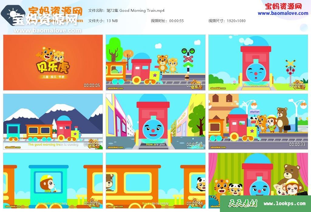 天天资源网收录的动画片《贝乐虎英文儿歌》,全部72集,英语发音,英文字幕;每集大小20M,资源总大小1.6G,单集播放时长约2分钟,1080P高清MP4视频格式,可以在电视机或电脑、平板、IPAD、早教机、手机等各种设备播放,提供百度云网盘下载。