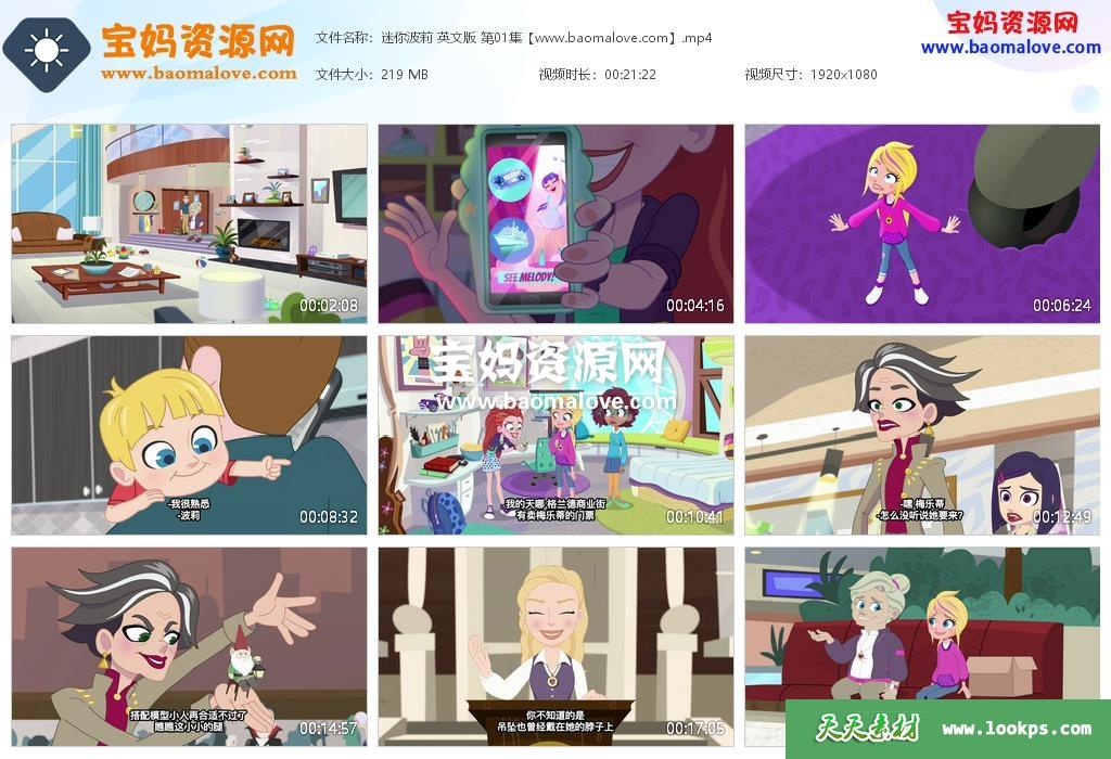 天天资源网收录的动画片《Polly pocket》迷你波莉英文版,全部26集,英语发音,中文字幕;每集大小228M,资源总大小6.01G,单集播放时长约26分钟,1080P高清MP4视频格式,可以在电视机或电脑、平板、IPAD、早教机、手机等各种设备播放,提供百度云网盘下载。