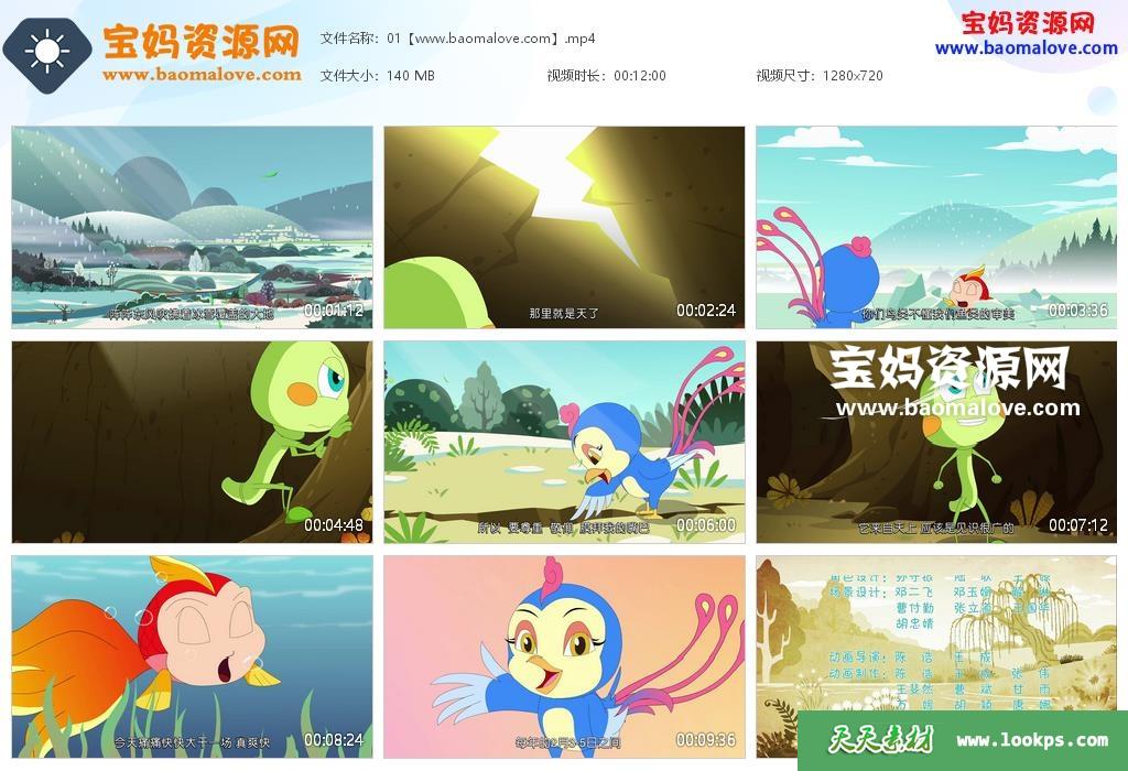天天资源网收录的动画片《风生水起之24节气的故事》,全部24集,国语发音,中文字幕;每集大小约135M,资源总大小3.14G,单集播放时长约12分钟,720P高清MP4视频格式,可以在电视机或电脑、平板、IPAD、早教机、手机等各种设备播放,提供百度云网盘下载。