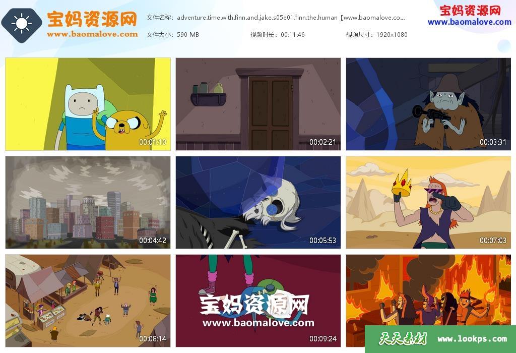 天天资源网收录的动画片《Adventure Time with Finn and Jake》探险活宝英文版 第五季,全部52集,英语俄语双语发音,内置英文和俄文字幕(可以下载后使用播放器设置字幕字体大小颜色或者切换关闭字幕);资源总大小30G,单集播放时长约12分钟,1080P高清MKV视频格式,可以在电视机或电脑、平板、IPAD、早教机、手机等各种设备播放,提供百度网盘下载。