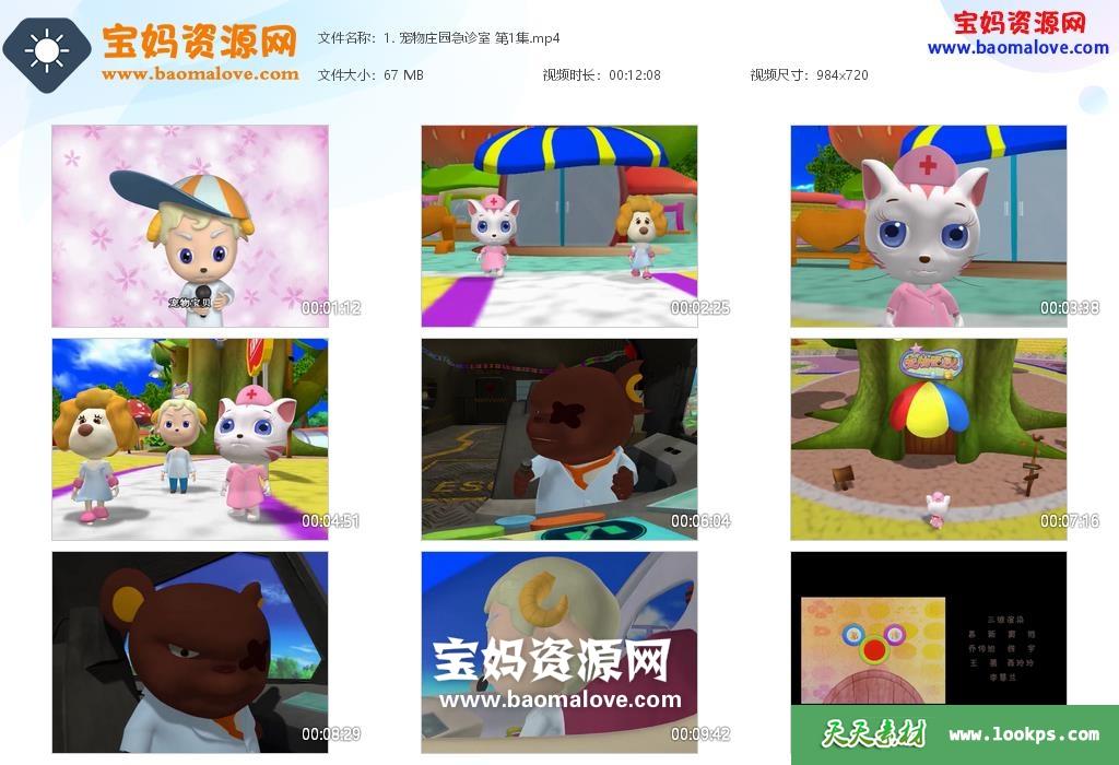 天天资源网收录的动画片《宠物庄园急诊室》 ,全部60集,国语发音,无字幕;每集大小约63M,资源总大小约3.86G,单集播放时长约12分钟,720P高清MP4视频格式,可以在电视机或电脑、平板、IPAD、早教机、手机等各种设备播放,提供百度网盘下载。