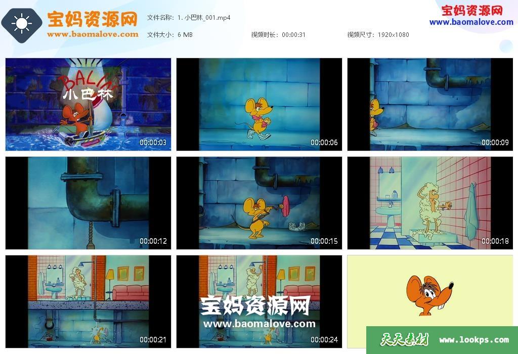 天天资源网收录的动画片《小巴林 Balin》,全部300集,默片无对白,无字幕;资源总大小约2.39G,单集播放时长约30秒,1080P高清MP4视频格式,可以在电视机或电脑、平板、IPAD、早教机、手机等各种设备播放,提供百度网盘下载。