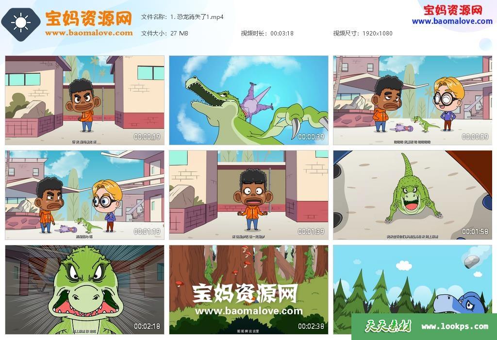 天天资源网收录的动画片《亲宝恐龙时代大冒险》,全部24集,国语发音,中文字幕;每集大小约30M,资源总大小约720M,单集播放时长约3分钟,1080P高清MP4视频格式,可以在电视机或电脑、平板、IPAD、早教机、手机等各种设备播放,提供百度云网盘下载。