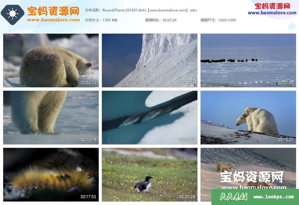 天天资源网收录的纪录片《地球生物圈 Round Planet》,全部10集,英语发音,内置英文字幕(可以下载后使用播放器选择设置字幕或者关闭字幕);资源总大小约13.05G,单集播放时长约26分钟,1080P高清MKV视频格式,可以在电视机或电脑、平板、IPAD、早教机、手机等各种设备播放,提供百度云网盘下载。