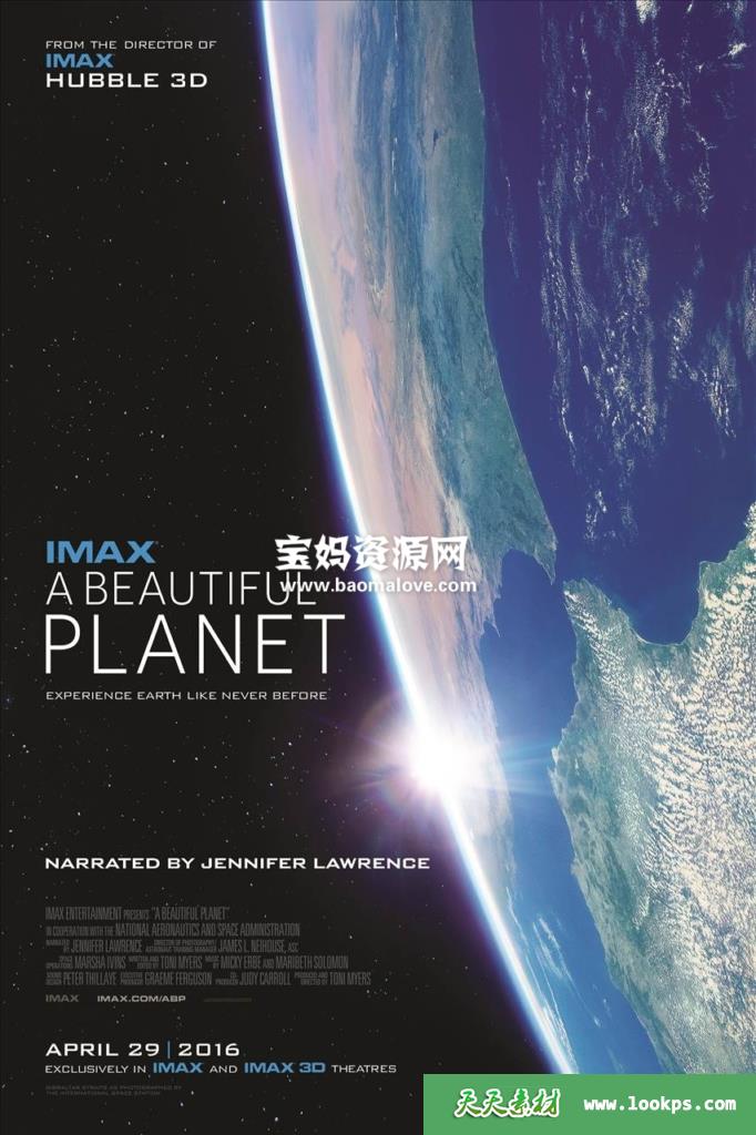 《美丽星球》是一部2016年美国纪录片,通过放映国际空间站上的宇航员在15个月内拍摄的IMAX影片来探索地球。由女演员詹妮弗·劳伦斯(Jennifer Lawrence)讲述。该影片还探讨了代表美国,俄罗斯,欧洲和日本的各个航天局的宇航员的一些日常经历。