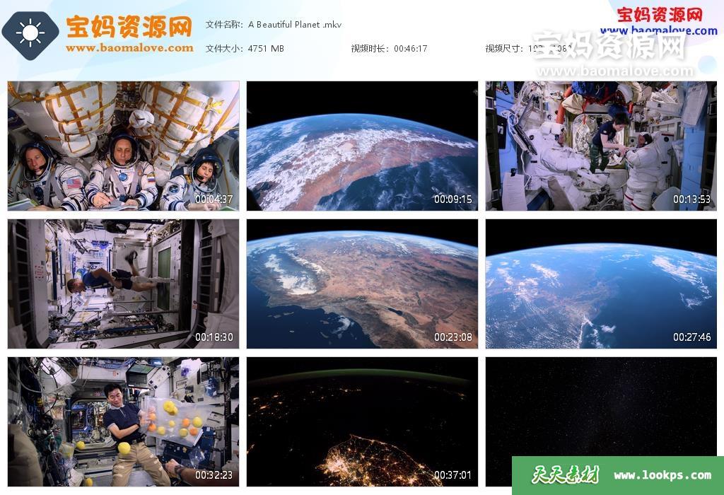 天天资源网收录的纪录片《美丽星球 A Beautiful Planet》,全部1集,英语发音,内置英文字幕(可以下载后使用播放器选择设置字幕或者关闭字幕);资源总大小约4.63G,单集播放时长约46分钟,1080P高清MKV视频格式,可以在电视机或电脑、平板、IPAD、早教机、手机等各种设备播放,提供百度云网盘下载。