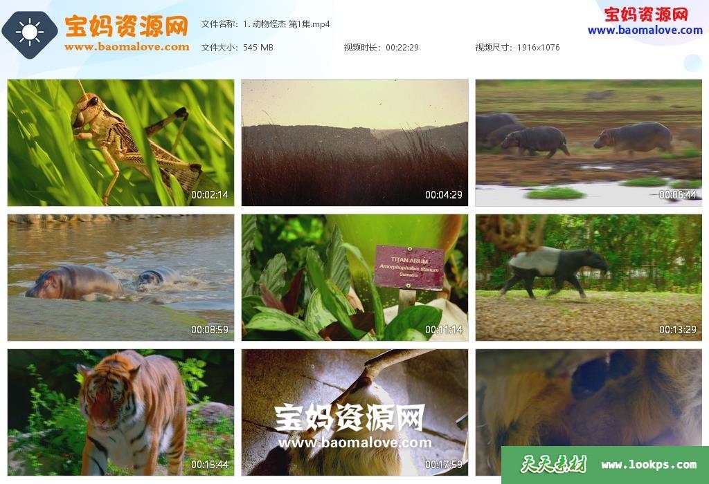 天天资源网收录的纪录片《动物怪杰》,全部7集,国语发音,无字幕;资源总大小约3.14G,单集播放时长约22分钟,1080P高清MP4视频格式,可以在电视机或电脑、平板、IPAD、早教机、手机等各种设备播放,提供百度云网盘下载。