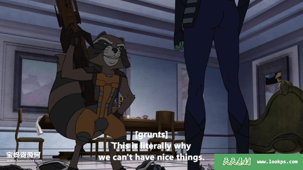 天天资源网收录的动画片《Marvel’s Guardians of the Galaxy》银河护卫队英文版 第三季,全部26集,英语发音,内置英文字幕(可以下载后使用播放器设置字幕字体大小颜色或者切换关闭字幕);资源总大小17.4G,单集播放时长约22分钟,1080P高清MKV视频格式,可以在电视机或电脑、平板、IPAD、早教机、手机等各种设备播放,提供百度网盘下载。