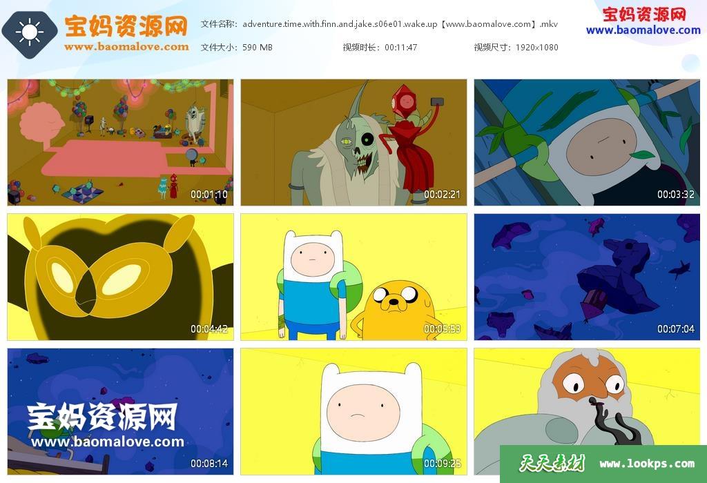 天天资源网收录的动画片《Adventure Time with Finn and Jake》探险活宝英文版 第六季,全部43集,英语俄语双语发音,内置英文和俄文字幕(可以下载后使用播放器设置字幕字体大小颜色或者切换关闭字幕);资源总大小25.4G,单集播放时长约12分钟,1080P高清MKV视频格式,可以在电视机或电脑、平板、IPAD、早教机、手机等各种设备播放,提供百度网盘下载。