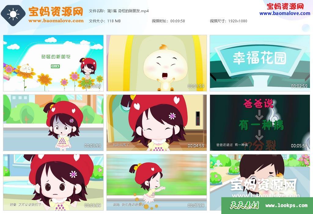 天天资源网收录的动画片《笨笨的幸福生活之幸福花园》,全部50集,国语发音,中文字幕;资源总大小约4.9G,单集播放时长约10分钟,1080P高清MP4视频格式,可以在电视机或电脑、平板、IPAD、早教机、手机等各种设备播放,提供百度云网盘下载。