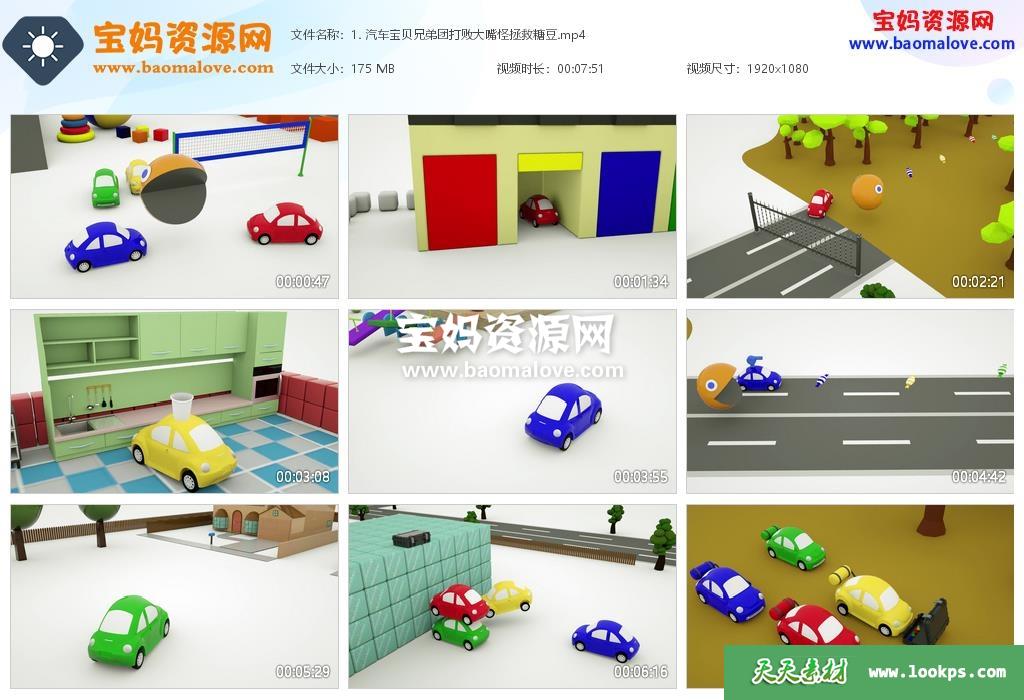 1. 汽车宝贝兄弟团打败大嘴怪拯救糖豆