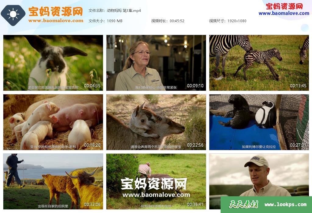 天天资源网收录的纪录片《动物妈妈 Animal Mums》,全部3集,英语发音,中文字幕;资源总大小约3.15G,单集播放时长约45分钟,1080P高清MP4视频格式,可以在电视机或电脑、平板、IPAD、早教机、手机等各种设备播放,提供百度云网盘下载。